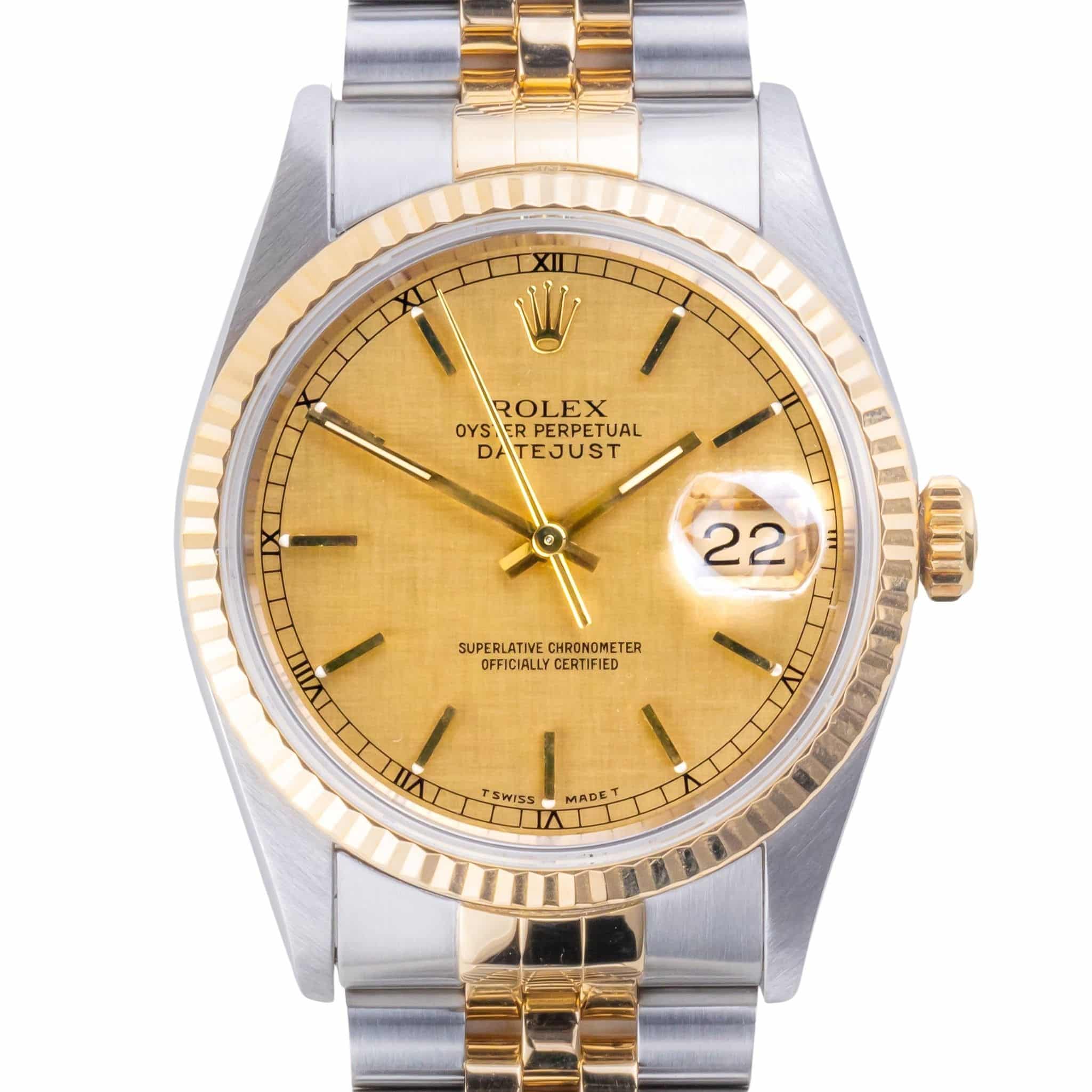 Rolex Oyster Perpetual Datejust Champagne Linen 16233 1991 (Vollständiger Satz)