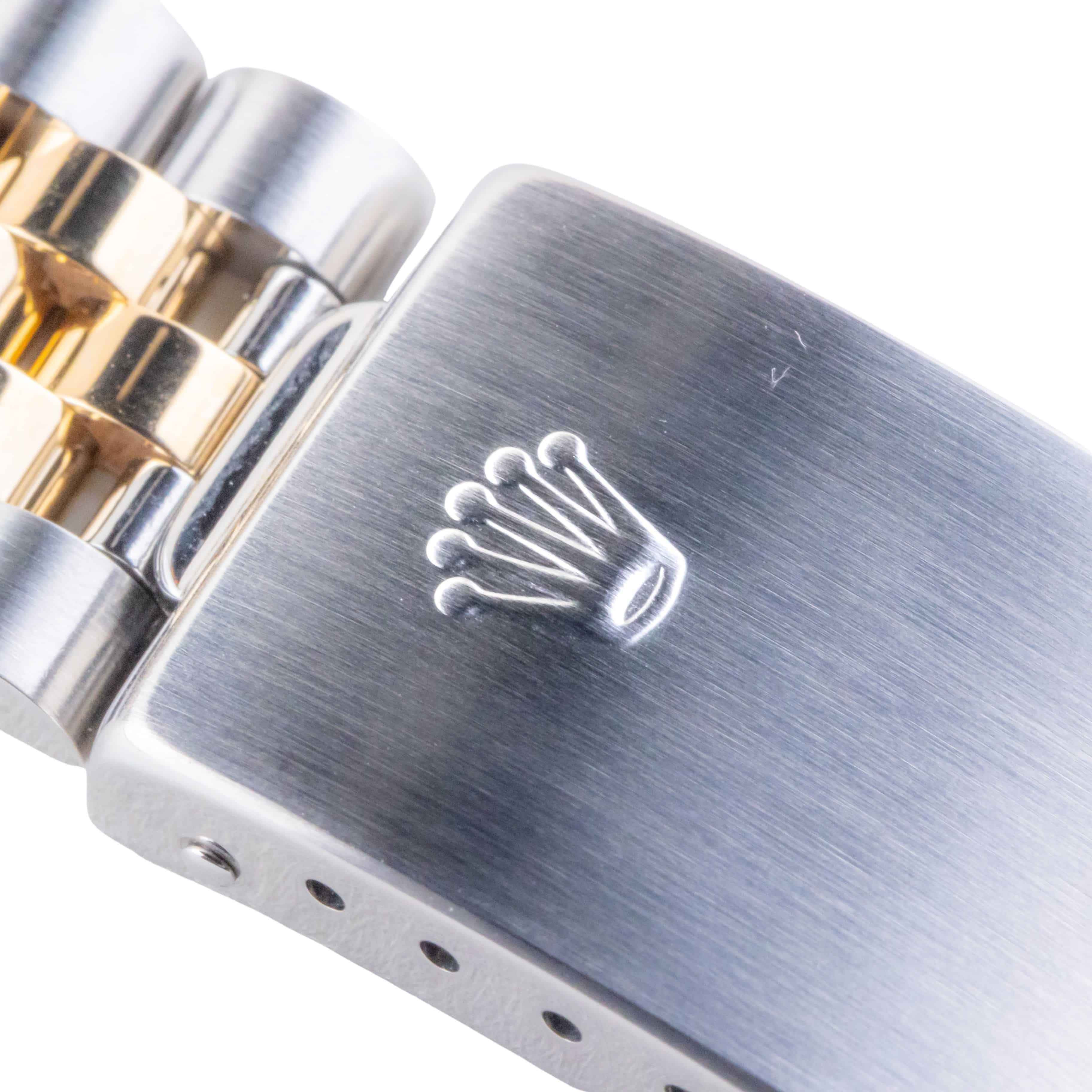Rolex Oyster Perpetual Datejust Referenz 16233 aus dem Jahr 1991 mit komplettem Set. Die Datejust 16233 misst eine 36mm Gold und Edelstahl Gehäuse, zweifarbige Jubilee Armband und kannelierte 18k Gold Lünette. Diese Datejust 16233 verfügt über ein Automatikwerk Kaliber 3135 mit einem Quickset-Datum-Funktion, eine Kratzfestigkeit Saphirglas und ein linen Zifferblatt mit Tritium Zeiger.