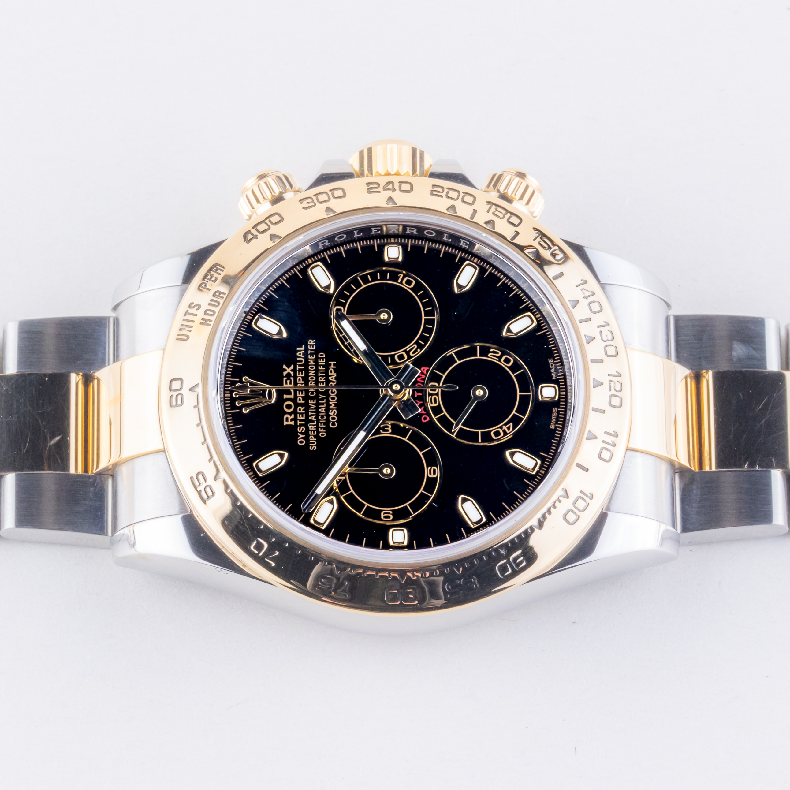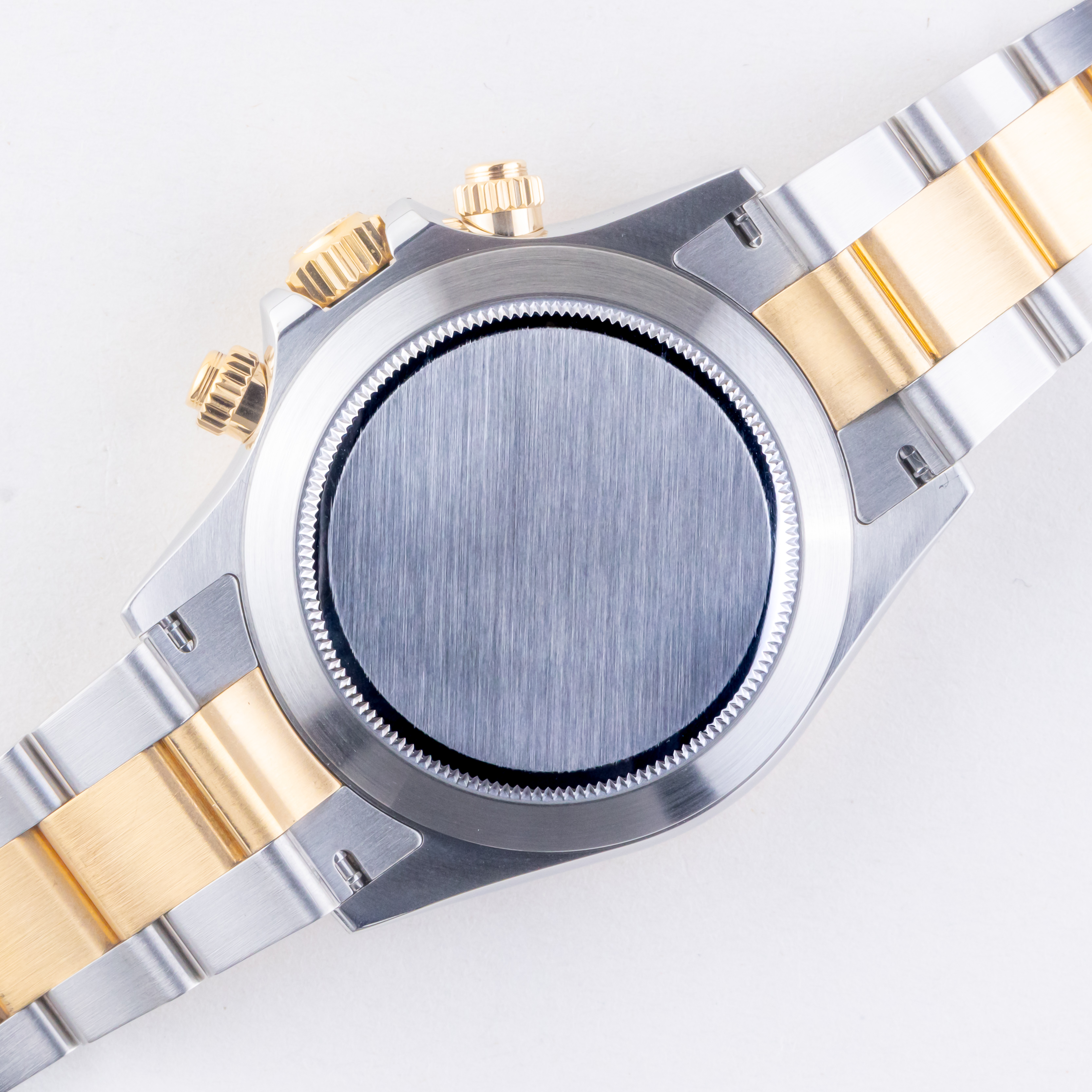 Rolex Daytona Referenz 116503 aus dem Jahr 2023 mit komplettem Set. Die Rolex Daytona Referenz 116503 misst ein 40-mm-Gehäuse aus Gold/Edelstahl, verfügt über ein Oyster-Armband aus Gold/Edelstahl und eine Tachymeter-Lünette aus Gelbgold. Die Rolex Daytona 116503 wird von einem hauseigenen 4130 Kaliber angetrieben, das über eine Chronographenfunktion verfügt, mit der Sie Ihre Aktivitäten präzise und einfach messen können.
