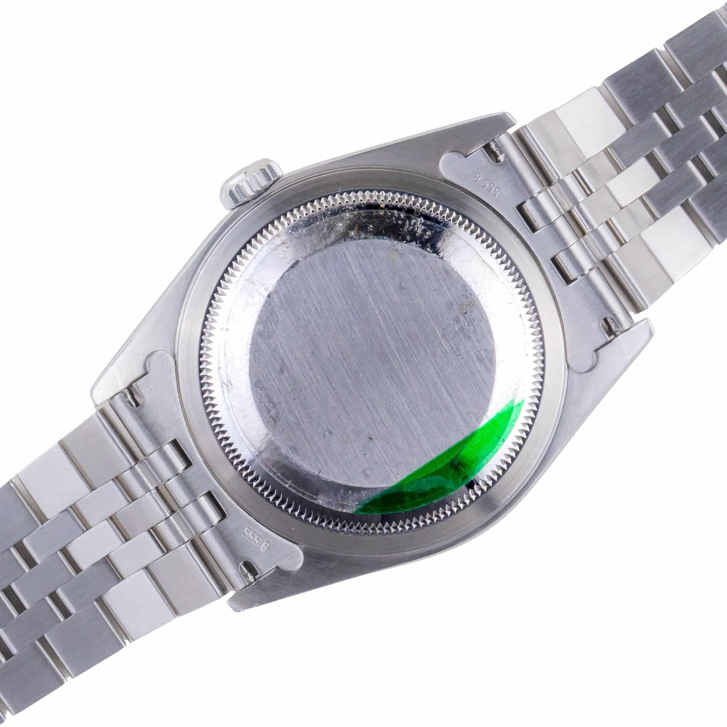 Obwohl viele die 36-mm-Breite im Vergleich zu aktuellen Herrenuhren als nominal betrachten, sieht die Rolex Datejust 16234 am Handgelenk eher wie eine 40-mm-Uhr aus. Diese Vintage-Rolex ist mit dem zuverlässigen und stets präzisen Automatikwerk Kaliber 3135 Perpetual ausgestattet, für das Rolex berühmt ist. Es ist außerdem COSC-zertifiziert und wird von echten Handwerkern zusammen mit der von Rolex hergestellten Breguet-Spirale gefertigt. Dieser elegante Zeitmesser verfügt über die revolutionäre Quickset-Datumsfunktion, die die Datejust-Modelle bei ihrem Erscheinen auf die Landkarte setzte.