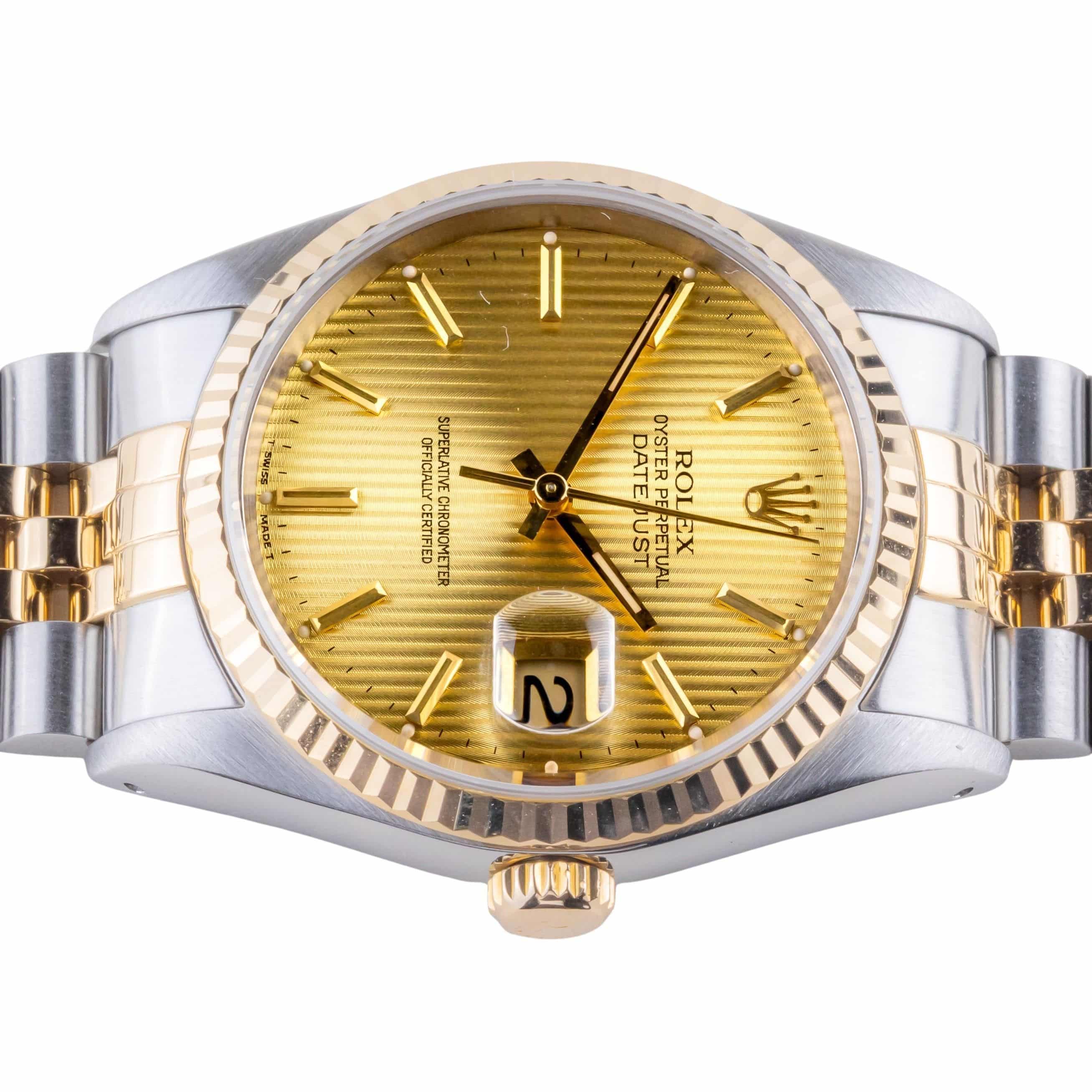 Rolex Oyster Perpetual Datejust Champagne Tapestry 16233 1990 (Volledige Set)