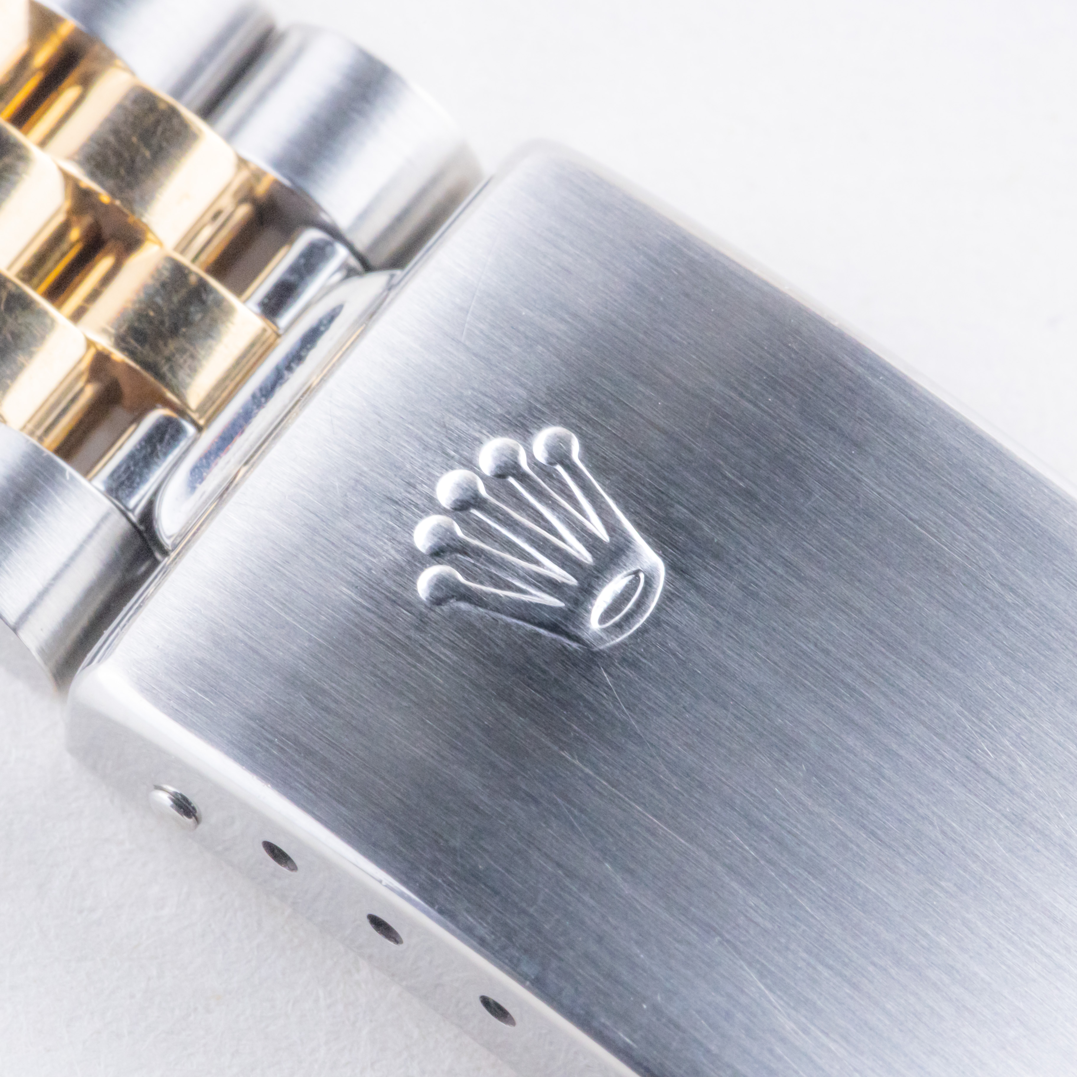 Lees meer...De Rolex Datejust 16233 die wij aanbieden komt uit 1990 en loopt op het automatische 3135 uurwerk van Rolex. Dit zeer betrouwbare uurwerk zit in een robuuste 36mm oystercase met de kenmerkende 18kt geelgouden fluted bezel. Daarnaast heeft dit horloge een prachtige logo wijzerplaat met Diamanten markeringen. De geweldige afwerking van de wijzerplaat is iets waar de Datejust bekend om staat. De two-tone jubilee band is voorzien van de sterke vouwsluiting met kenmerkende Rolex kroon.