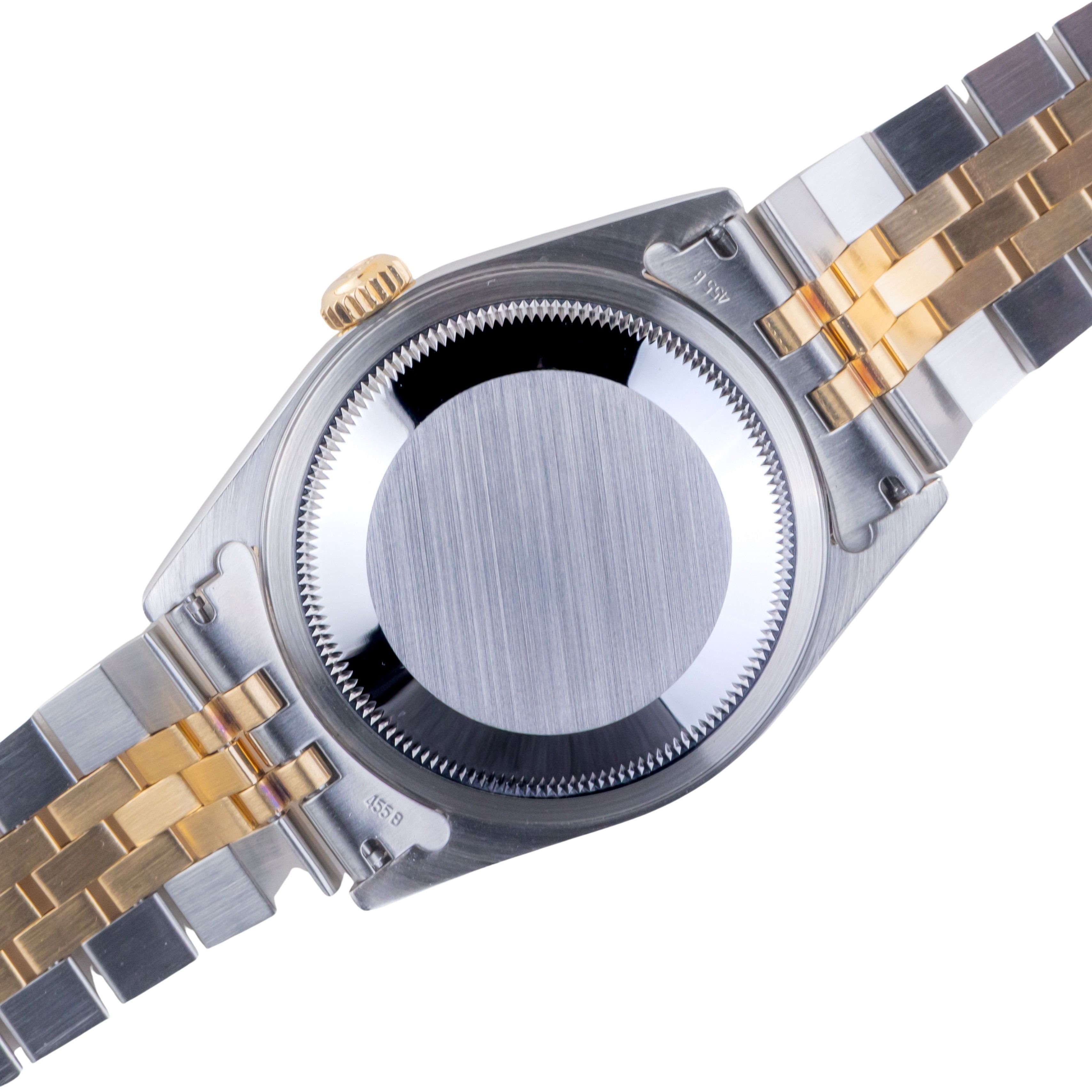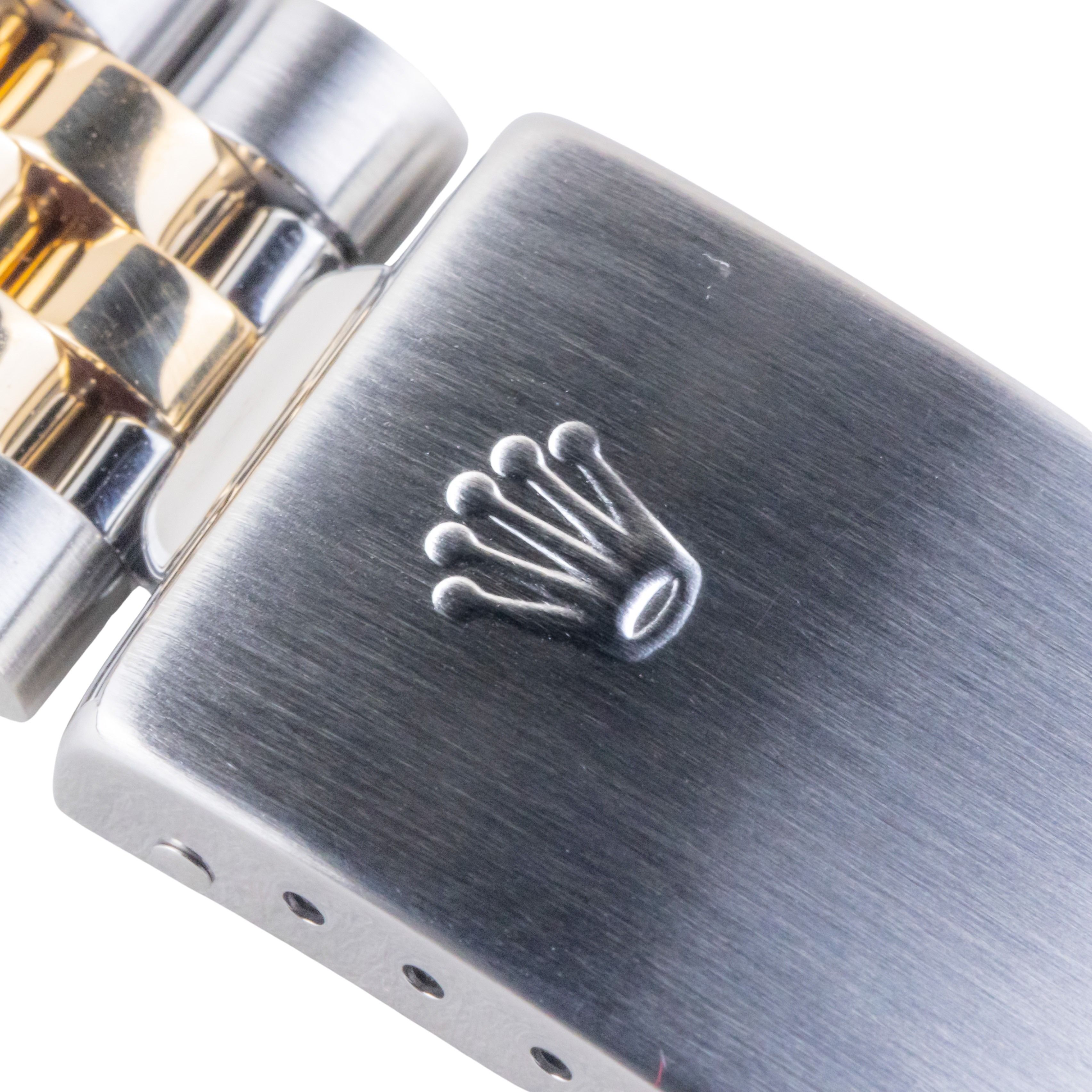 Lees meer...De Rolex Datejust 16233 die wij aanbieden komt uit 1996 en loopt op het automatische 3135 uurwerk van Rolex. Dit zeer betrouwbare uurwerk zit in een robuuste 36mm oystercase met de kenmerkende 18kt geelgouden fluted bezel. Daarnaast heeft dit horloge een prachtige zwarte wijzerplaat met eenvoudige minute track. De geweldige afwerking van de wijzerplaat is iets waar de Datejust bekend om staat. De two-tone jubilee band is voorzien van de sterke vouwsluiting met kenmerkende Rolex kroon.