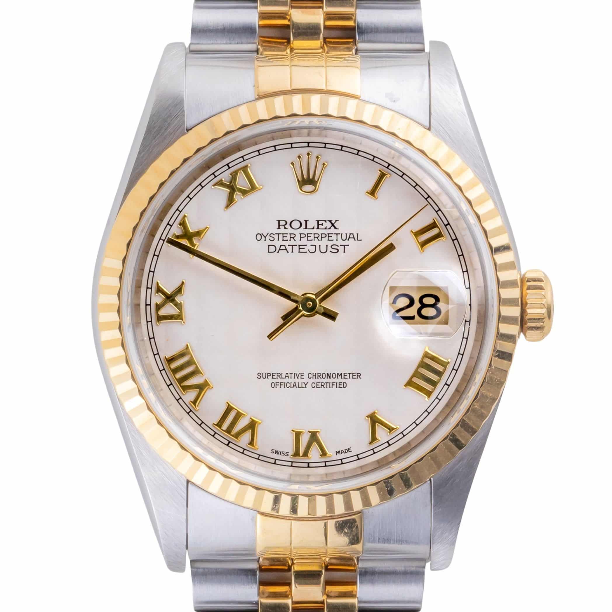 Als je op zoek bent naar een iconisch horloge voor dagelijks gebruik dan kun je eigenlijk niet om de Rolex Datejust 16233 heen. Herkenbaar door de 18kt geelgouden fluted bezel, het datumvenster met vergrootglas en comfortabele jubilee band. De Datejust 16233 is de ware belichaming van Rolex en haar iconische designs. Het is niet voor niks dat het ontwerp van de Datejust sinds de introductie in 1945 haast ongewijzigd is gebleven. Zie jij jezelf al de show stelen met een mooie two-tone Rolex?