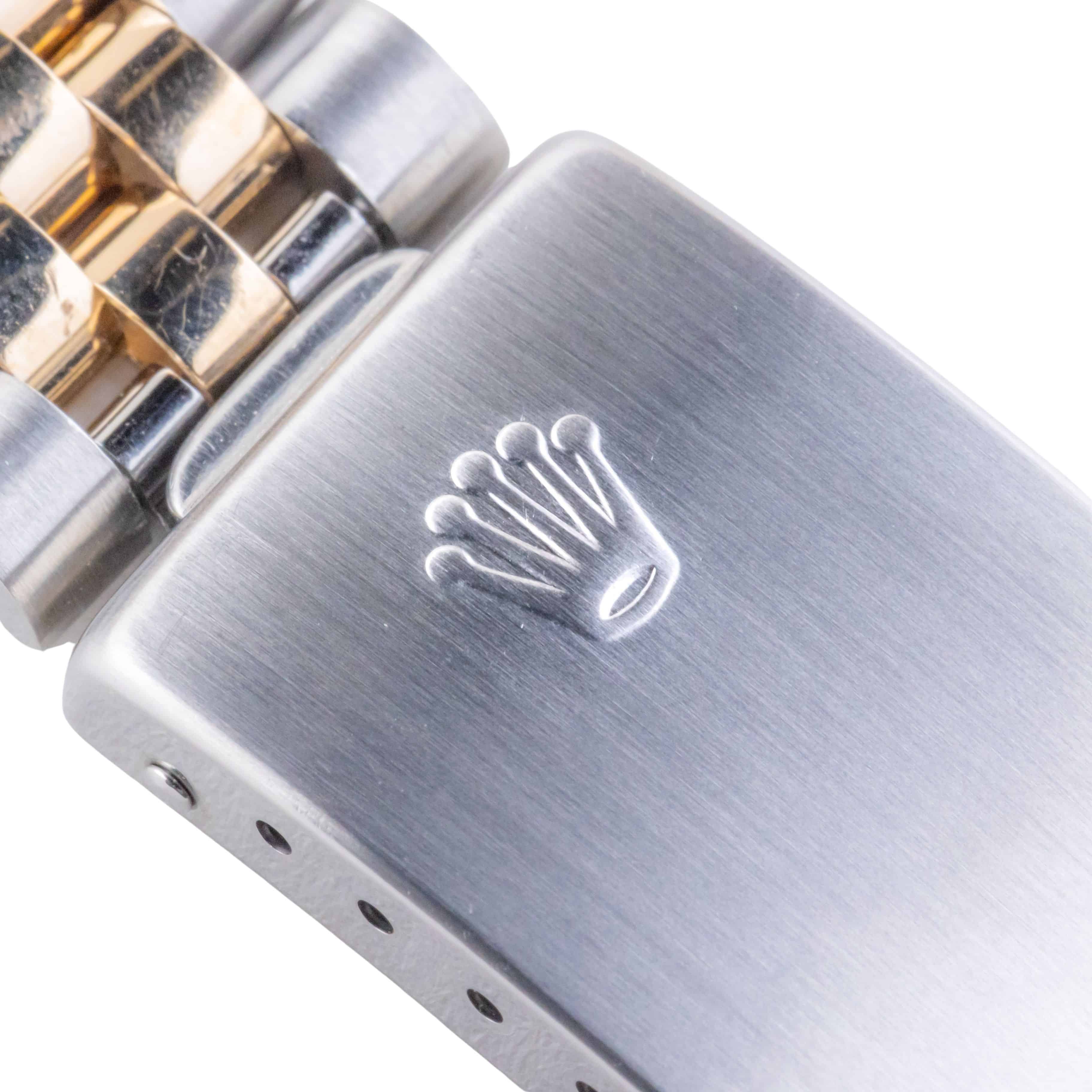Lees meer...De Rolex Datejust 16233 die wij aanbieden komt uit 1993 en loopt op het automatische 3135 uurwerk van Rolex. Dit zeer betrouwbare uurwerk zit in een robuuste 36mm oystercase met de kenmerkende 18kt geelgouden fluted bezel. Daarnaast heeft dit horloge een prachtige blauwe wijzerplaat met Romeinse minute track. De geweldige afwerking van de wijzerplaat is iets waar de Datejust bekend om staat. De two-tone jubilee band is voorzien van de sterke vouwsluiting met kenmerkende Rolex kroon.