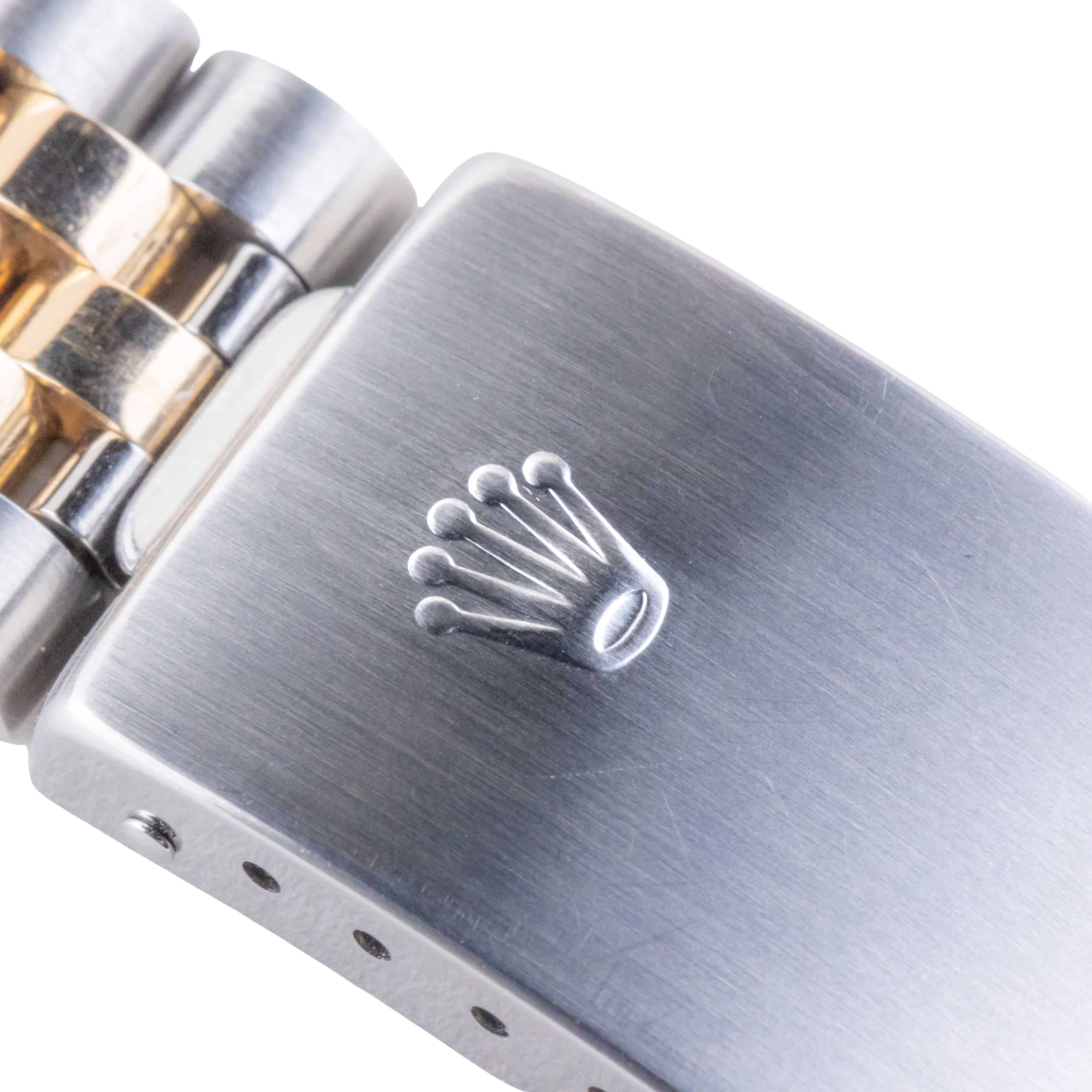 Lees meer...De Rolex Datejust 16233 die wij aanbieden komt uit 1996 en loopt op het automatische 3135 uurwerk van Rolex. Dit zeer betrouwbare uurwerk zit in een robuuste 36mm oystercase met de kenmerkende 18kt geelgouden fluted bezel. Daarnaast heeft dit horloge een prachtige champagne wijzerplaat met eenvoudige minute track. De geweldige afwerking van de wijzerplaat is iets waar de Datejust bekend om staat. De two-tone jubilee band is voorzien van de sterke vouwsluiting met kenmerkende Rolex kroon.