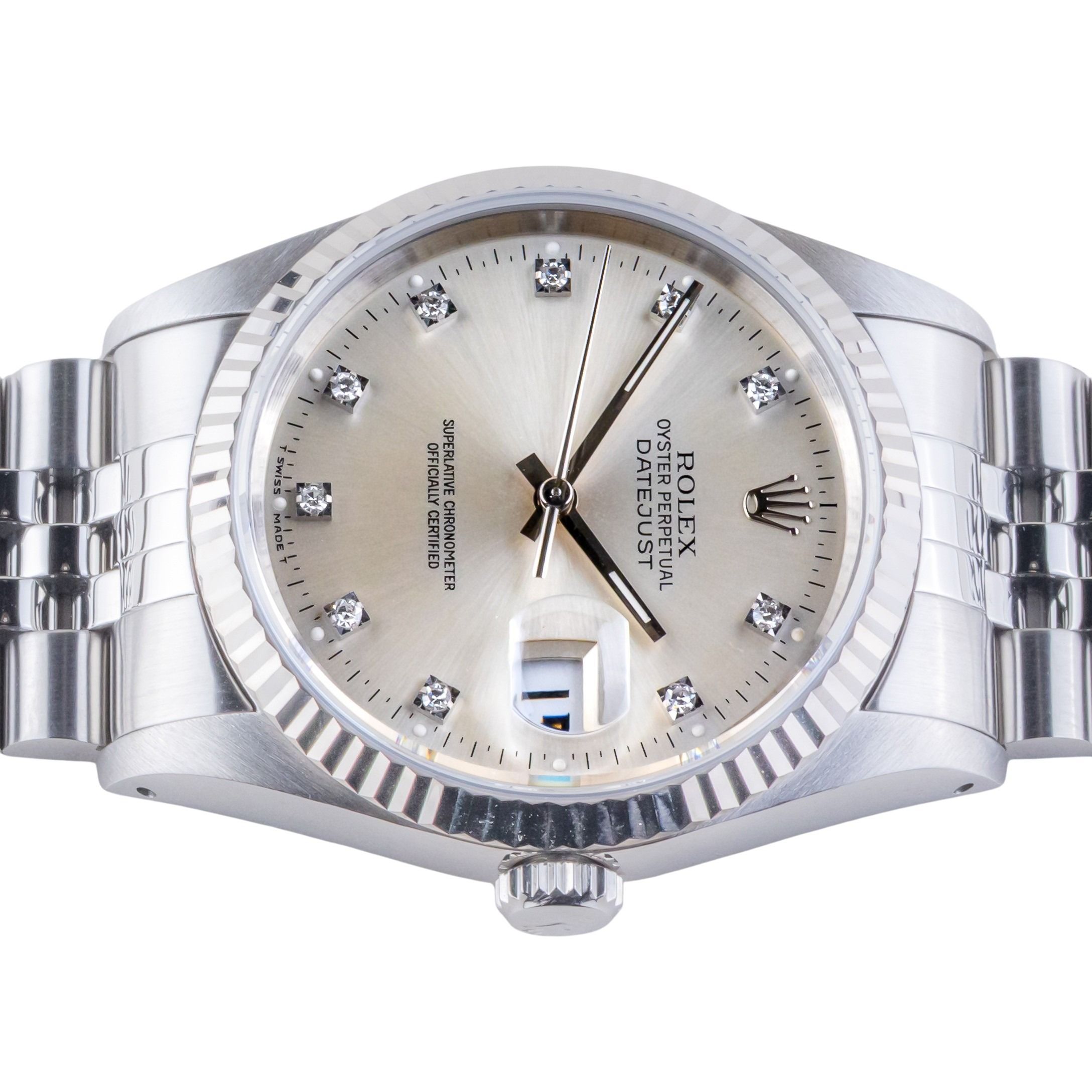 Rolex Oyster Perpetual Datejust Silver Diamond 16234 1991 (Volledige Set)