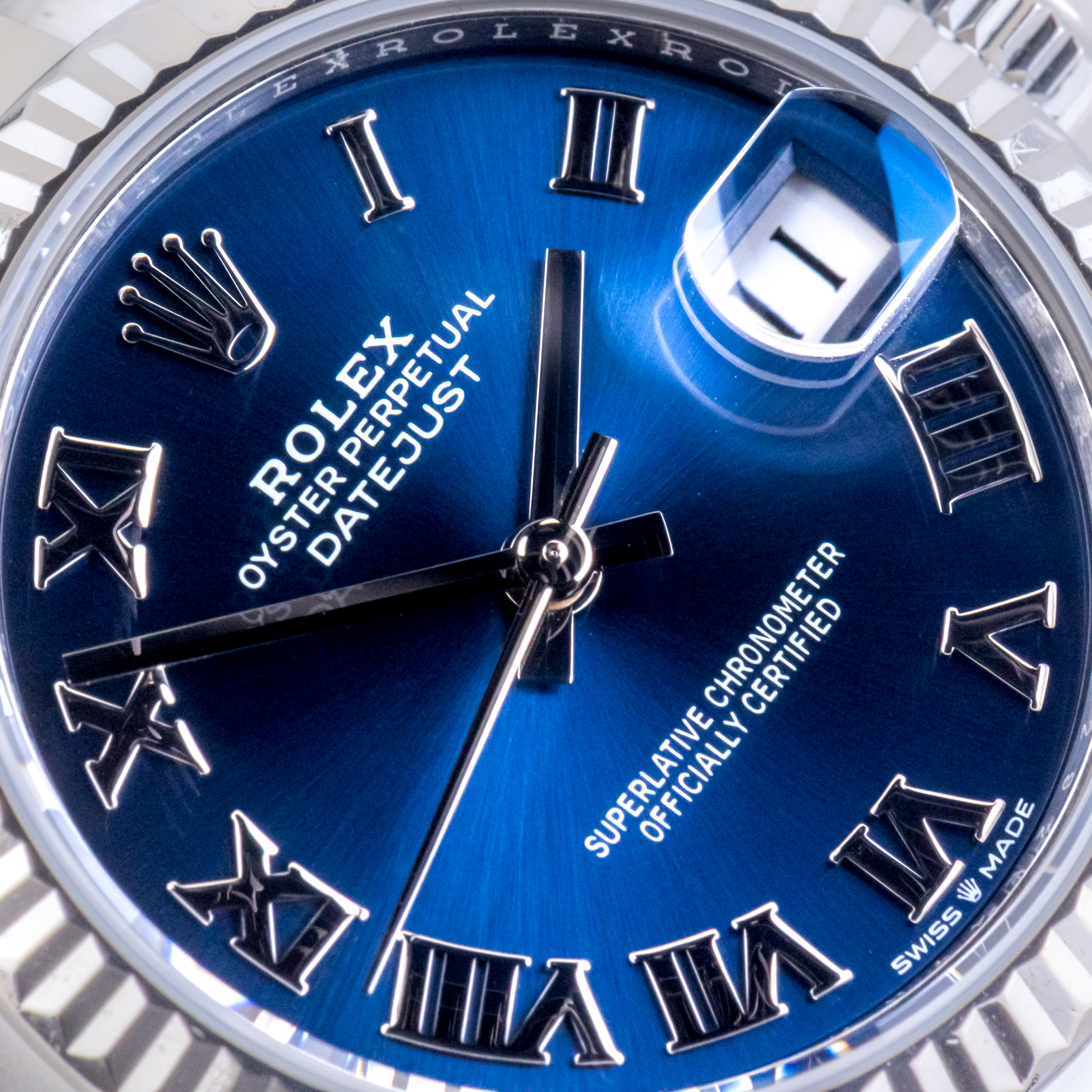 Rolex Oyster Perpetual Lady-Datejust referentie 278274 uit 2021 inclusief volledige set. De lady-Datejust 278274 bevat een 31mm stalen/witgouden kast, een stalen/witgouden jubilee band met kroonsluiting, en fluted bezel van 18k witgoud. Deze 278274 bevat een automatisch uurwerk kaliber 3235 met een quickset datum functie, een kras bestendig saffierglas en blauwe wijzerplaat met Romeinse markeringen.