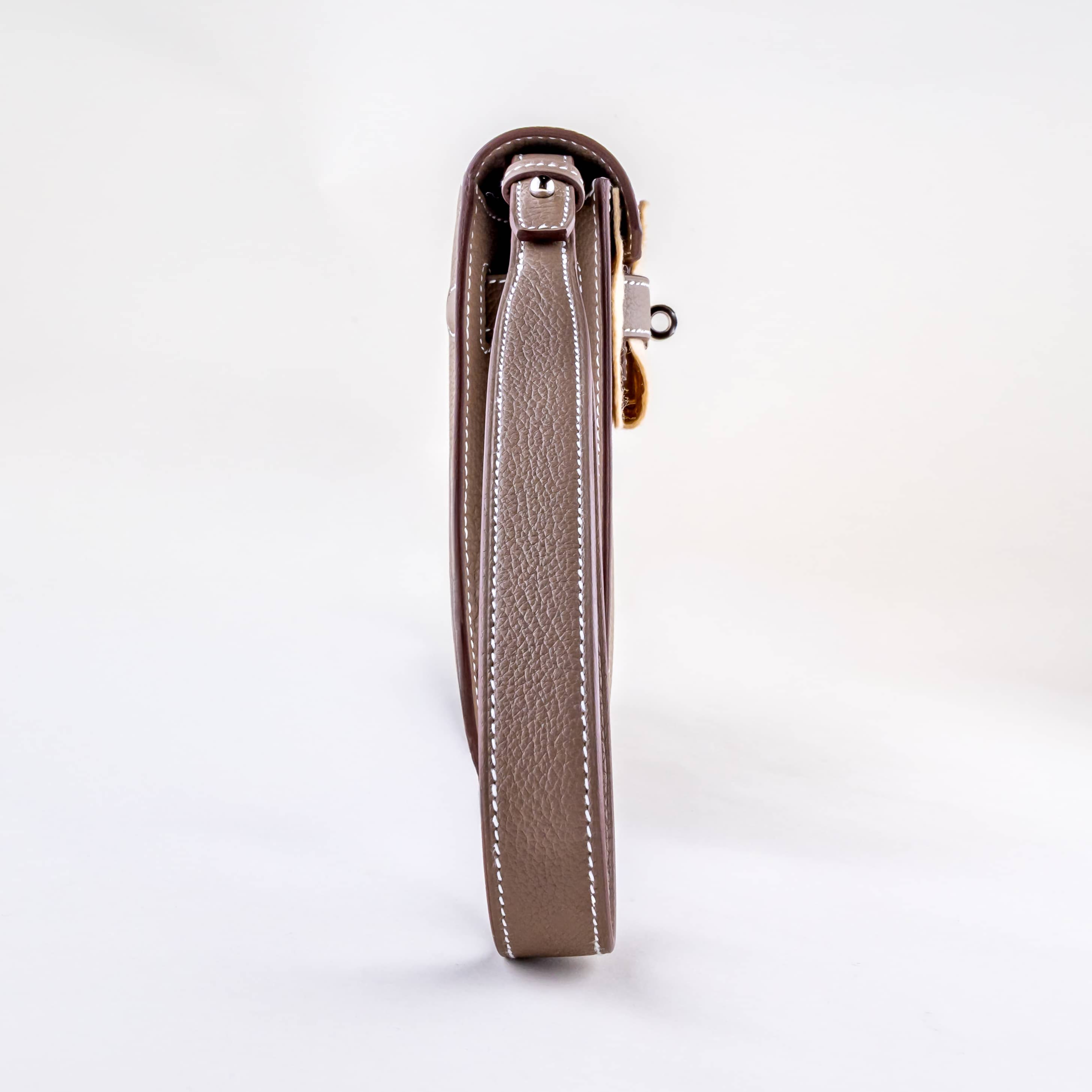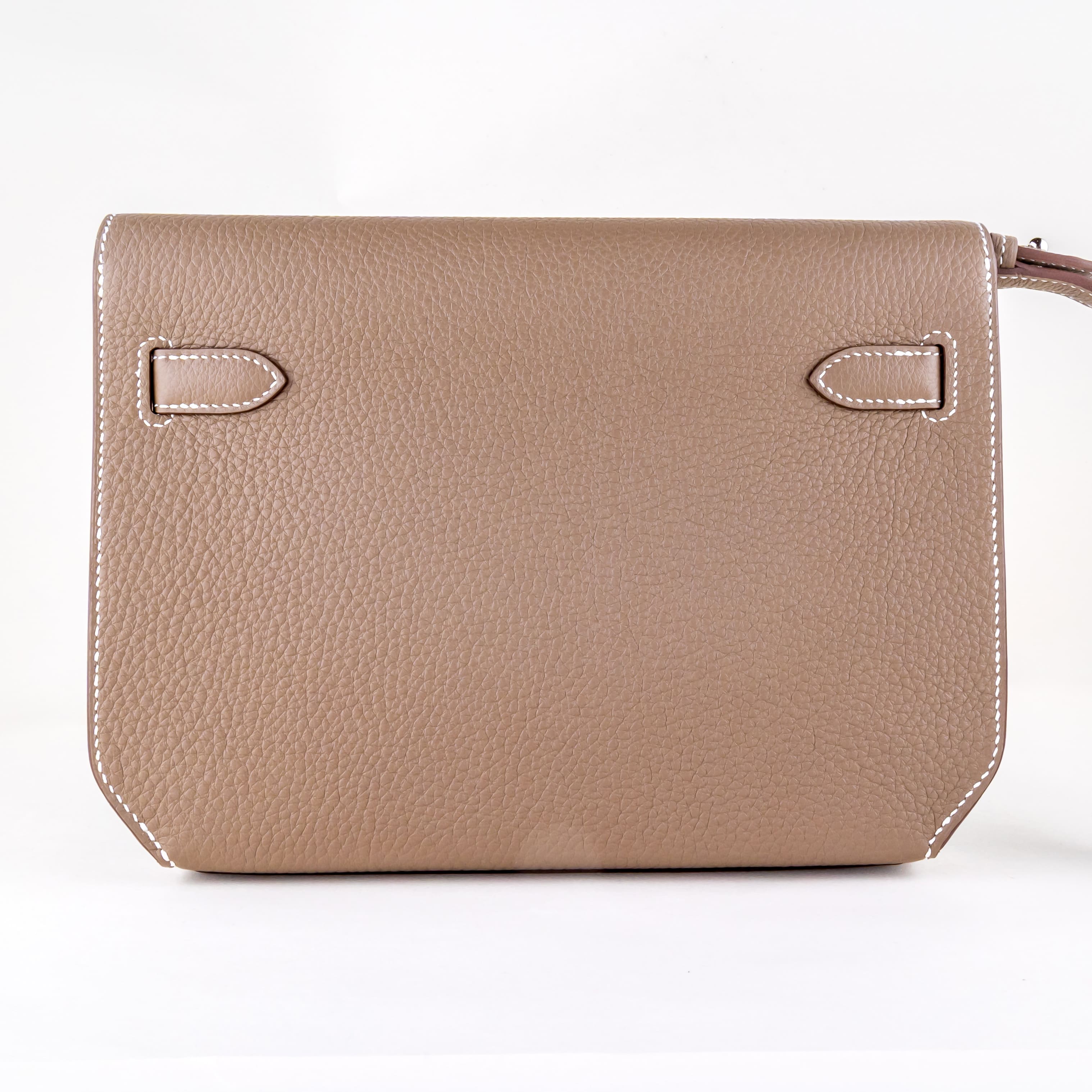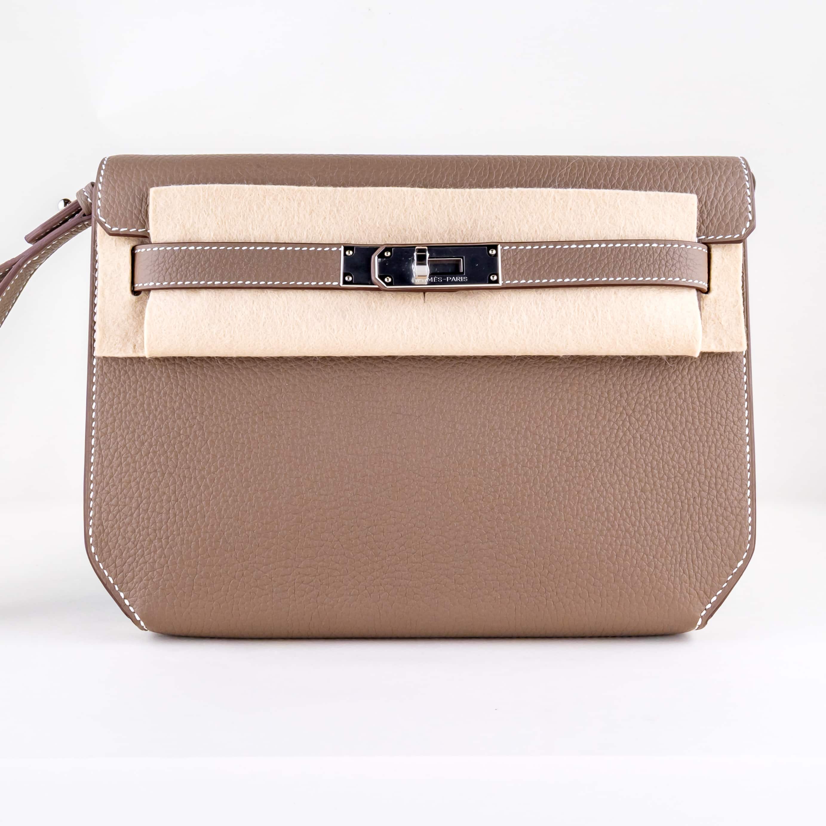 The Hermès Dépêches 25 in Étoupe is a timeless expression of refined elegance and functional luxury. Crafted from premium leather in the iconic Étoupe shade — a sophisticated taupe tone — this structured design offers both versatility and a polished, professional look. The Dépêches 25 is finished with Palladium hardware, adding a subtle contrast that enhances its modern appeal. Measuring approximately 25 × 20 × 6 cm, this sleek and compact briefcase is perfectly sized to carry daily essentials, documents, and small personal items while maintaining a clean and elegant silhouette.