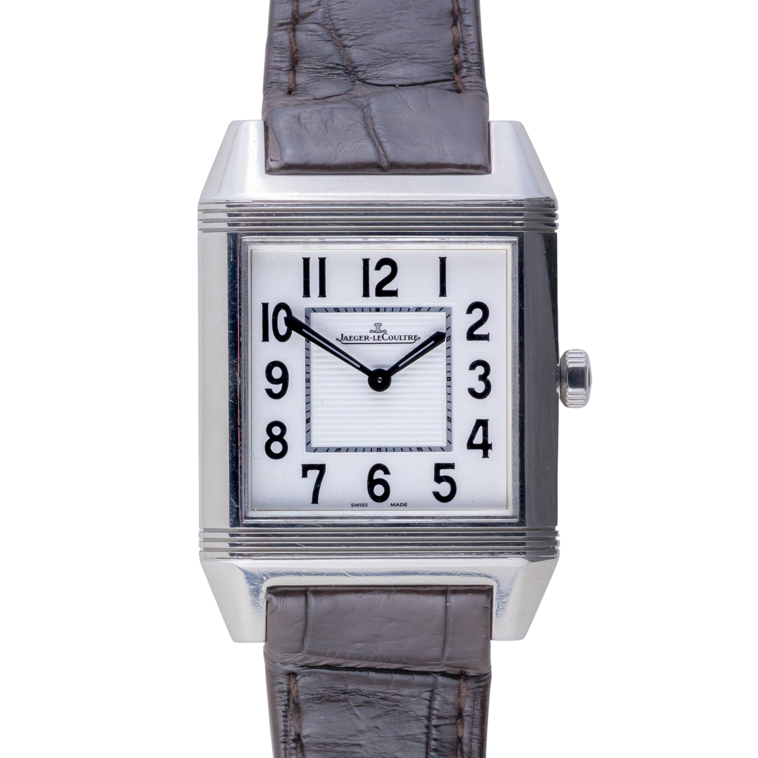 Read more...The larger, square stainless steel case gives the watch a strong presence on the wrist, while the iconic reversible case mechanism remains faithful to the original Reverso concept introduced in 1931. The case can be smoothly flipped to protect the dial, offering both functionality and heritage appeal.
