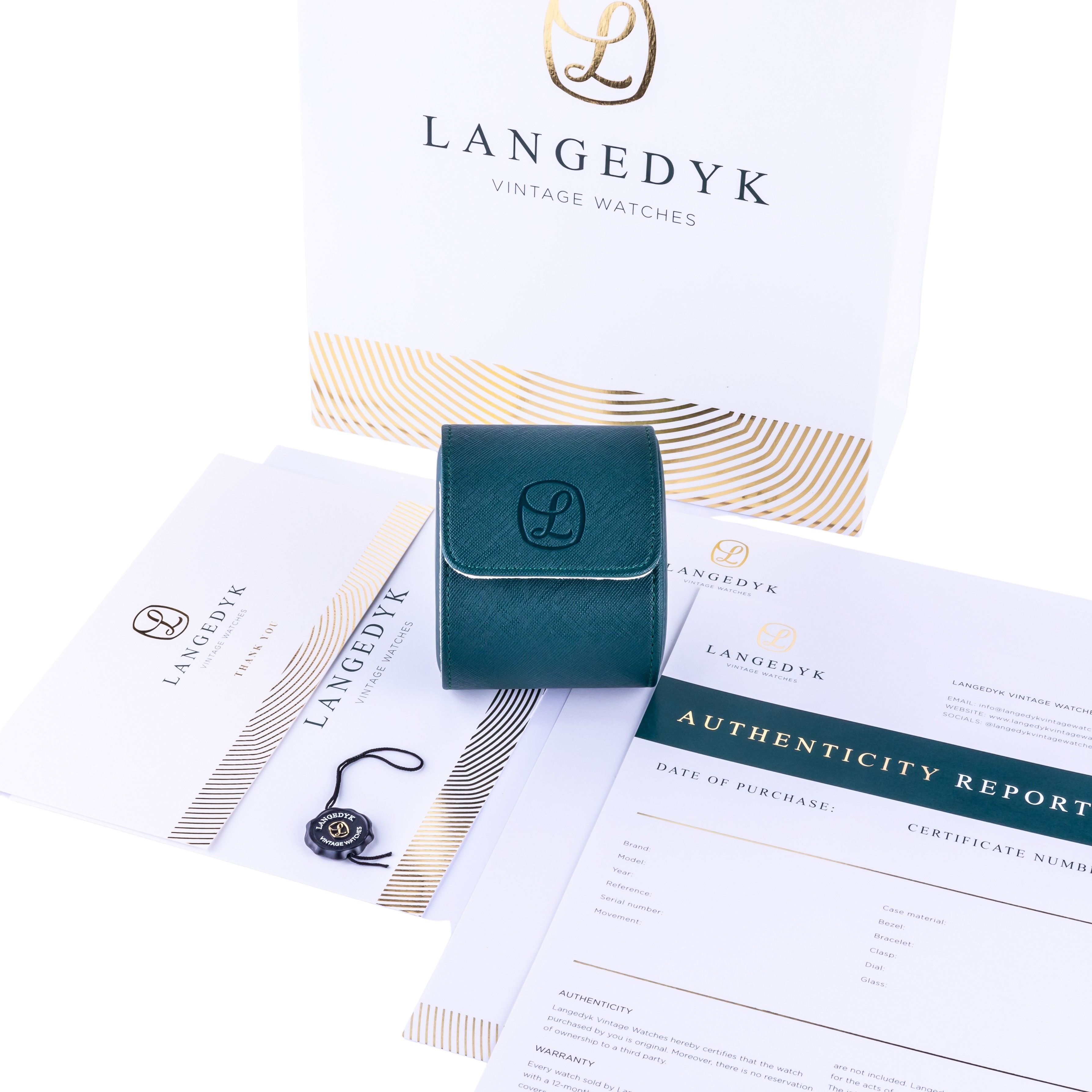 Read more...Every watch sold by Langedyk Vintage Watches is included with a LVW watch box, Authenticity report and free worldwide (insured) shipment. In addition, every pre-owned watch is offered with our 12-month warranty from the date of purchase.