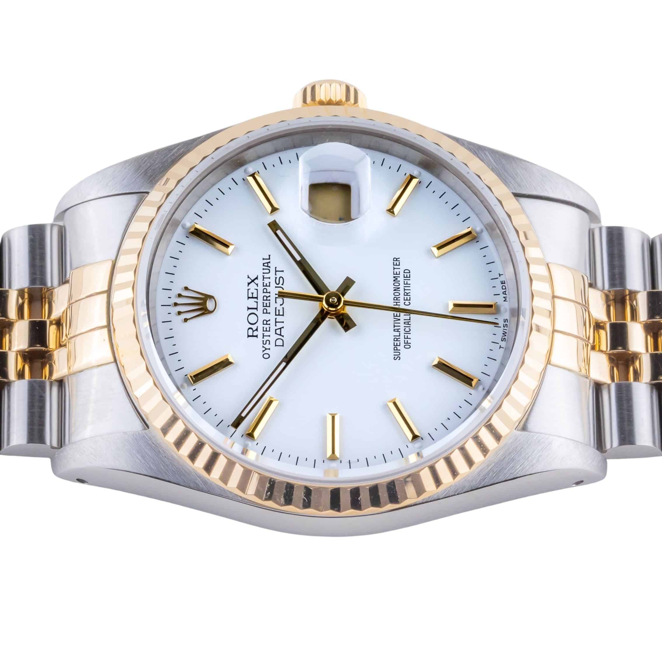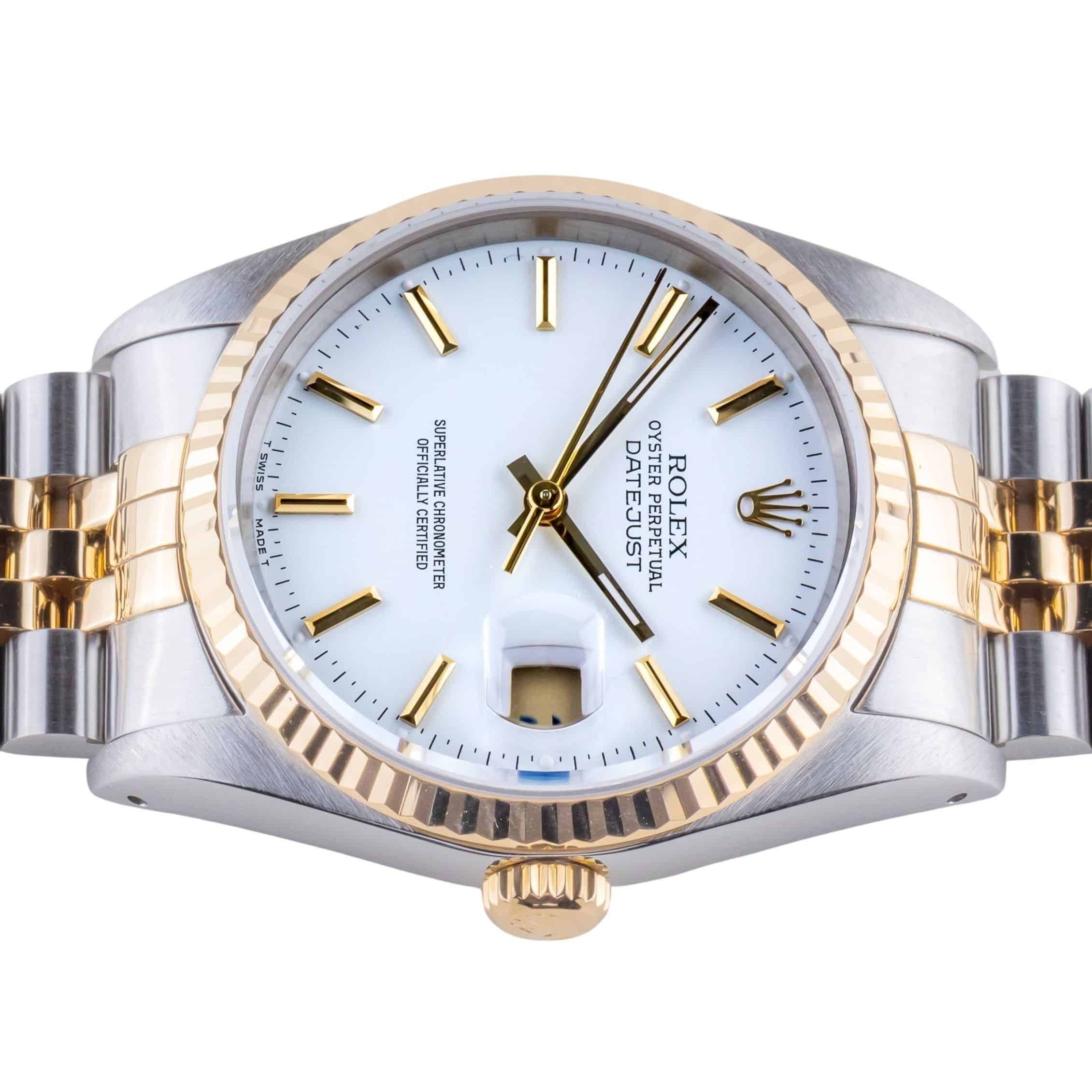 Introduced in 1988, the Rolex Datejust 16233 is the statesman of stainless-steel dress watches and is the people’s choice to provide the ultimate time-keeping tool with the trusted classic style due to its fluted 18k yellow gold bezel. This model features a 100m water-resistant stainless-steel case (36mm) and gold/stainless steel Jubilee bracelet that screams dress watch at the top of its lungs. Yet the great variety of sunburst or texture dials quietly whispers as this watch is the answer to any occasion that may come your way.