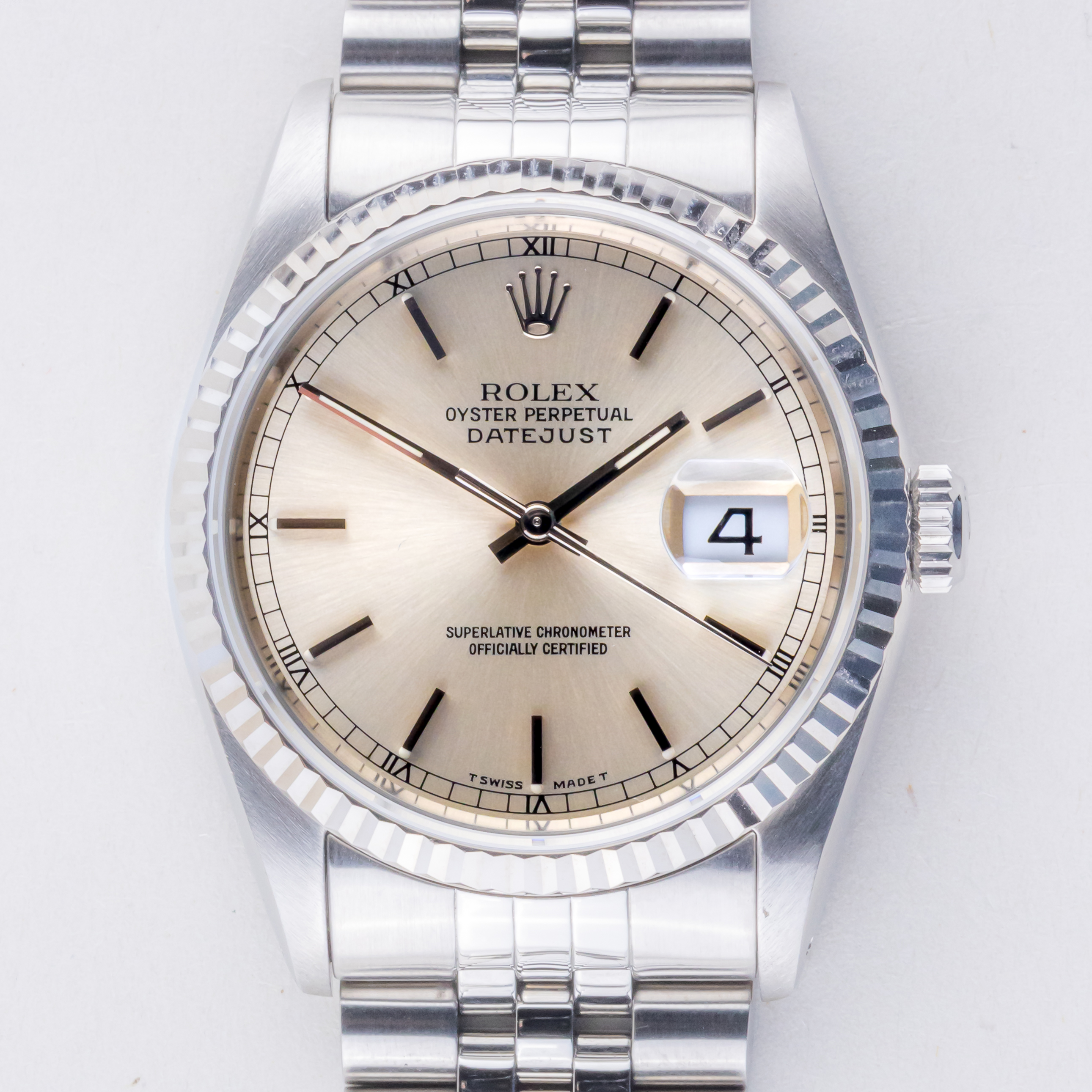 Introduced in 1988, the Rolex Datejust 16234 is the statesman of stainless-steel dress watches and is the people’s choice to provide the ultimate time-keeping tool with the trusted classic style due to its fluted 18k white gold bezel. This model features a 100m water-resistant stainless-steel case (36mm) and stainless steel Jubilee bracelet that screams dress watch at the top of its lungs. Yet the great variety of sunburst or texture dials quietly whispers as this watch is the answer to any occasion that may come your way.