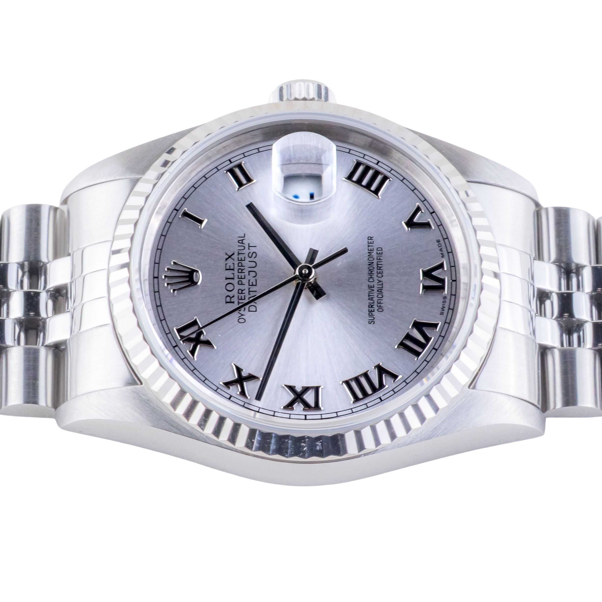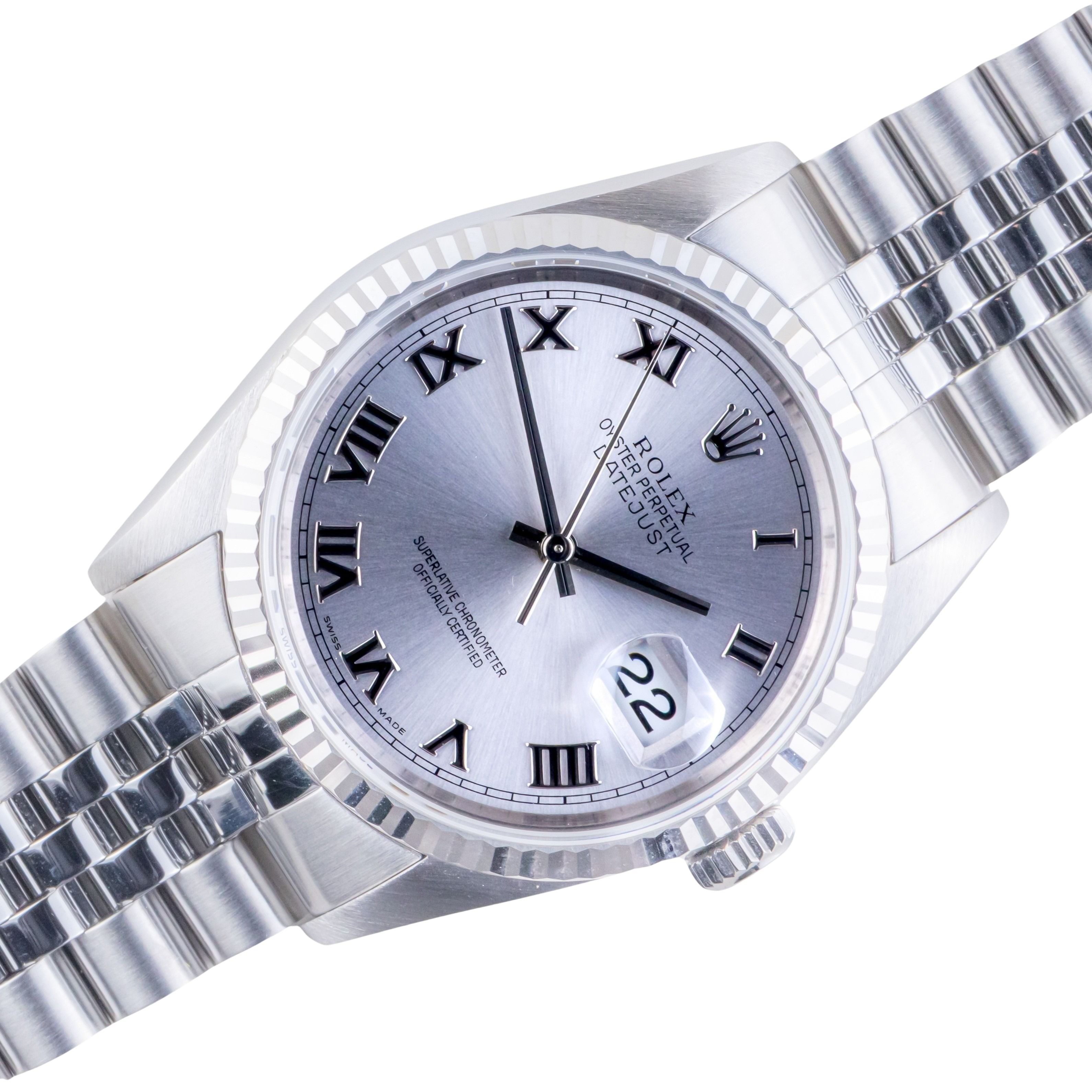Even though many consider the 36mm width nominal compared to current men’s watch styles, the Rolex Datejust 16234 looks more like a 40mm watch when worn on your wrist. This vintage Rolex features the dependable and always accurate Caliber 3135 Perpetual self-winding movement that Rolex is famous for. It is also COSC Chronometer certified that these true artisans’ handcraft along with the Rolex-manufactured Breguet hairspring. Packed within this elegant timepiece is the revolutionary Quickset date feature that puts the Datejust models on the map when they were released.