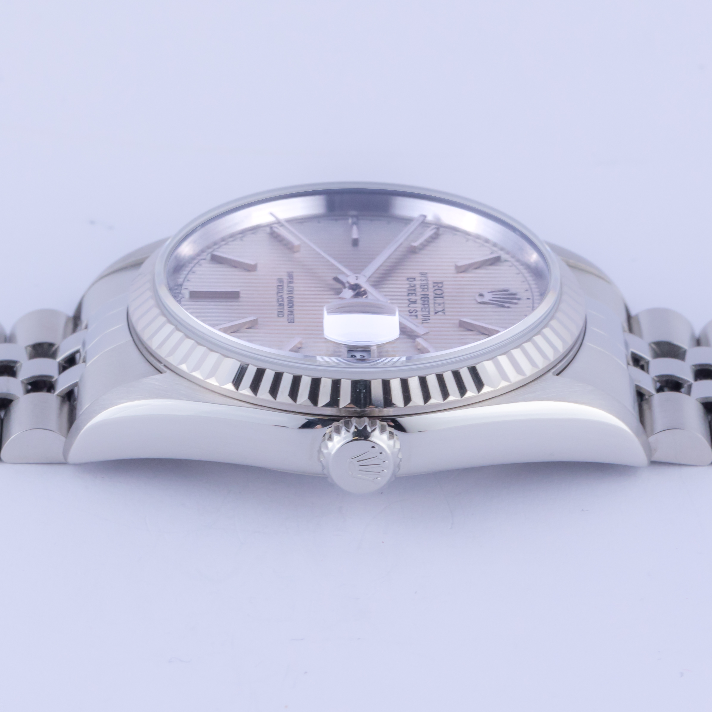 Introduced in 1988, the Rolex Datejust 16234 is the statesman of stainless-steel dress watches and is the people’s choice to provide the ultimate time-keeping tool with the trusted classic style due to its fluted 18k white gold bezel. This model features a 100m water-resistant stainless-steel case (36mm) and stainless steel Jubilee bracelet that screams dress watch at the top of its lungs. Yet the great variety of sunburst or texture dials quietly whispers as this watch is the answer to any occasion that may come your way.