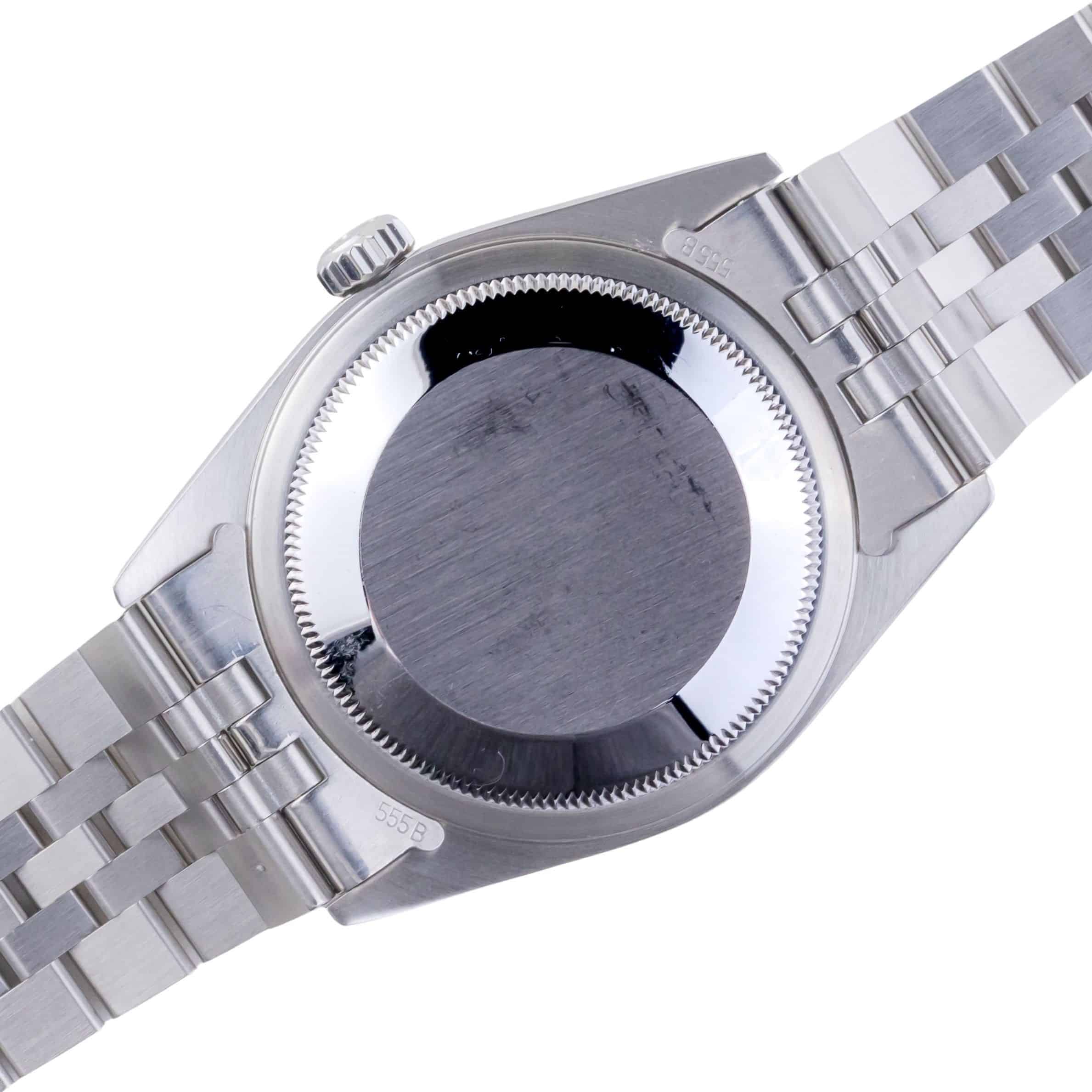 Even though many consider the 36mm width nominal compared to current men’s watch styles, the Rolex Datejust 16234 looks more like a 40mm watch when worn on your wrist. This vintage Rolex features the dependable and always accurate Caliber 3135 Perpetual self-winding movement that Rolex is famous for. It is also COSC Chronometer certified that these true artisans’ handcraft along with the Rolex-manufactured Breguet hairspring. Packed within this elegant timepiece is the revolutionary Quickset date feature that puts the Datejust models on the map when they were released.