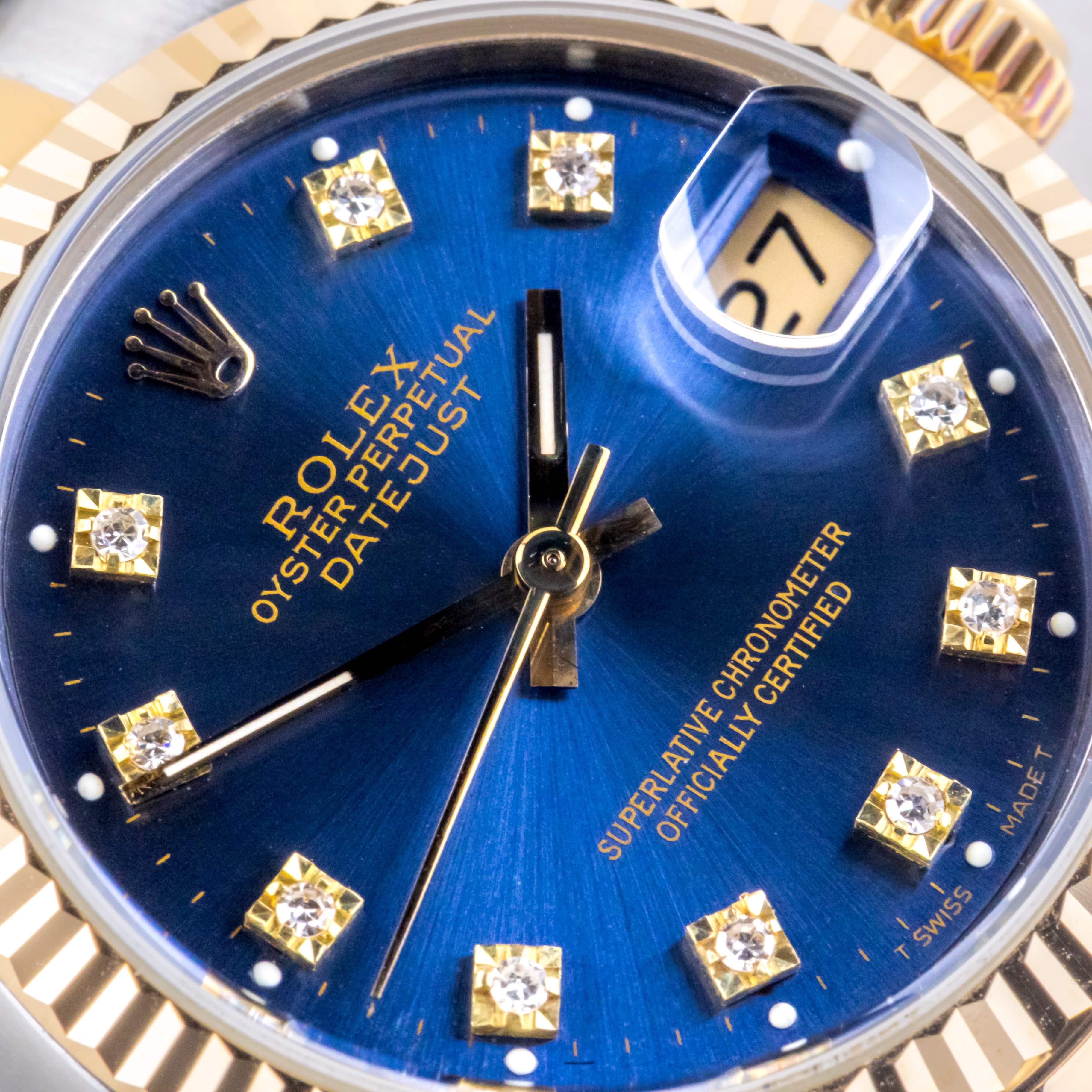 Rolex Datejust Mid-Size Blue Diamond 68273 1988 (Full Set)