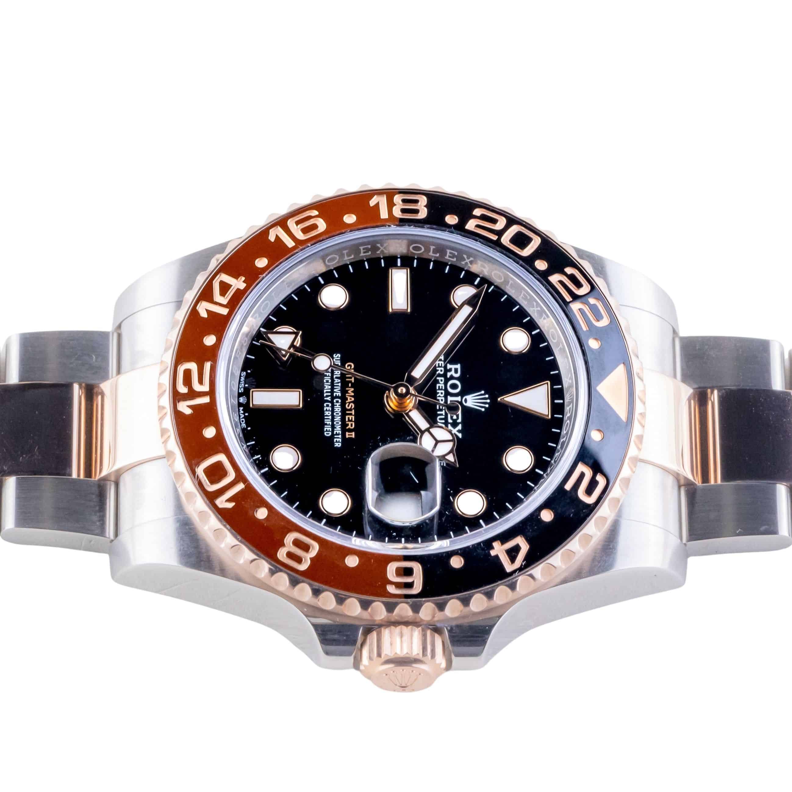 Rolex GMT-Master II Rootbeer reference 126711CHNR from 2024 including full set. The GMT-Master II 126711CHNR measures a 40mm rosegold and stainless steel case, a two-tone Oyster bracelet w/ Oysterclasp and Ceramic bezel. The GMT-Master II 126711CHNR features an automatic caliber 3285 with quickset date function, a scratch resistance sapphire crystal and black dial with chromalight display.