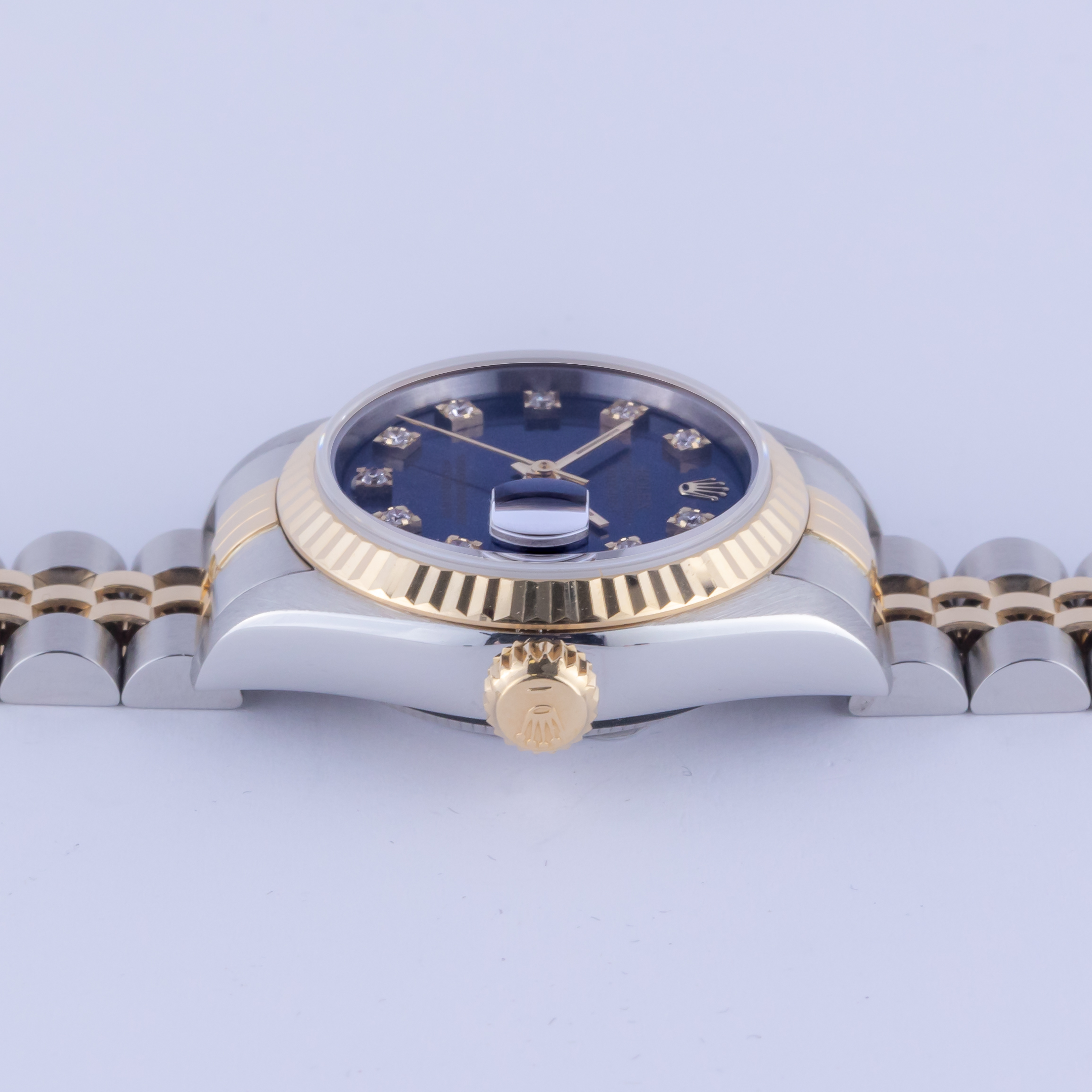 This masterful styling is fully evident in the Rolex Datejust-Lady 69173 making it a trusted choice in a wristwatch for women across the globe who are looking to make a bold statement through their choice of a wearable timepiece. This ladies’ model of the Rolex Datejust collection was produced to the same carefully developed standards as the men’s line, but in a more delicate 26mm case that complemented a woman’s smaller wrist size. Its styling allows for versatility in wear, as it is suitable for both casual and formal occasions. It truly is the perfect Rolex to add to your jewelry box.