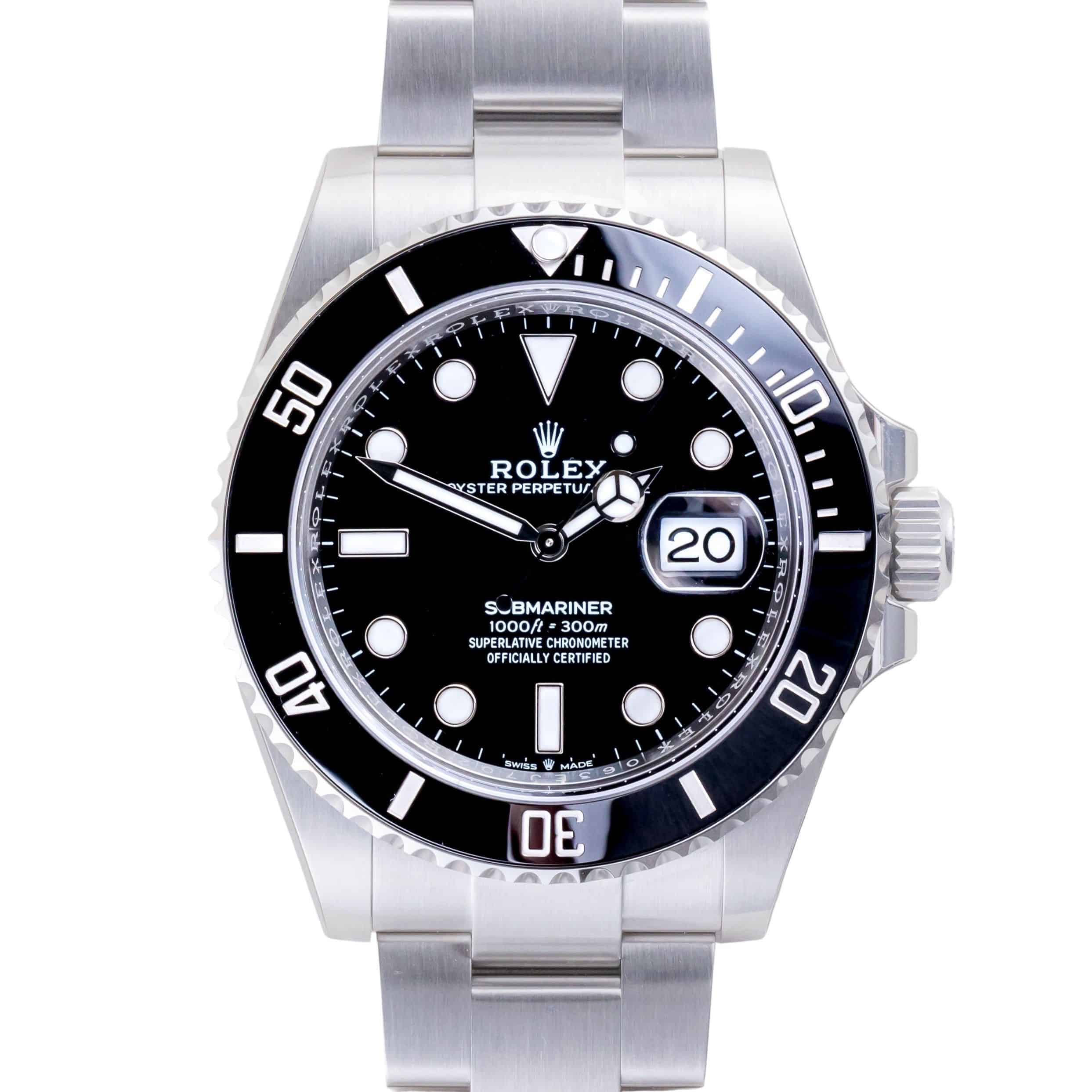 NEW Rolex Submariner Date reference 126610LN from 2026 including full set. The Submariner Date measures a 41mm stainless steel case, a stainless steel Oyster bracelet w/ Oysterlock clasp and a ceramic (rotatable) bezel. The Submariner Date 126610LN features an automatic movement caliber 3235, a scratch resistance sapphire crystal and black dial with chromalight display.